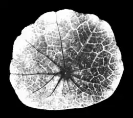 present in other portions of the leaf. The result was recorded by exposing the leaf to sunlight in contact with the velox paper in a printing frame. The region lacking starch, being more translucent, gave the darkest image on the velox paper (Fig. 10).