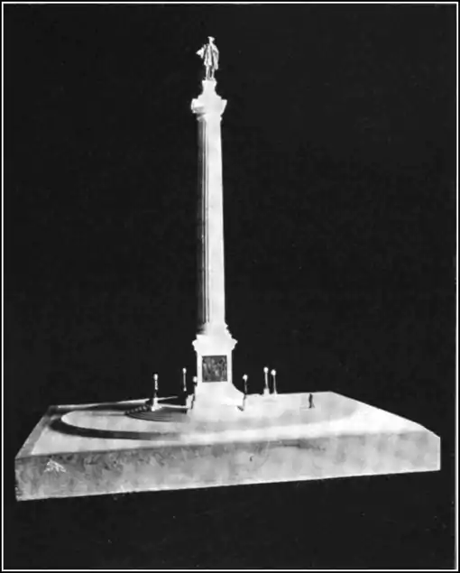 Henry Hudson Monument. To be erected on Spuyten Duyvil by popular subscription at a cost of $100,000. and to be dedicated as a part of the official program of the Hudson-Fulton Celebration. This monument is by Karl Bitter and Schrady, is 110 feet high and will stand on an elevation of two hundred feet above the water, being visible for many miles above the Hudson River and from Long Island Sound.