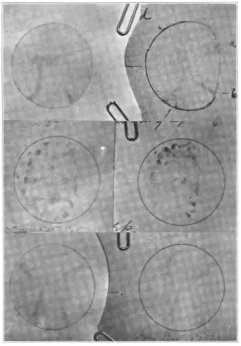 The sketches at the top were made on November 1, 1907, by Dr. Lowell (on the left), and on November 2, 1007, by V. M. Slipher (on the right). The sketches In the middle were made by V. M. Slipher and E. C. Slipher, on February 27, 1909. The sketches at the bottom by Dr. Lowell and E. C. Slipher, on April 12, 1909.