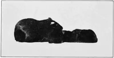 The scientific law which governs the inheritance of albinism, and of other characters transmitted in a similar fashion, is known as Mendel's law. It applies, apparently, to all cases of color-inheritance, as well as to the inheritance of characters of many other sorts. Through its operation new combinations of the peculiar characters of individuals or of races can be obtained in the course of one or two generations. Thus when a guinea-pig showing the two coat-characters seen in Fig. 9, dark and smooth coat, is mated with one showing the combination, white and rough, Fig. 10, young are produced showing a wholly new combination, dark and rough, Fig. 11. And if these young are at maturity bred together, a fourth combination, white and smooth, appears among their young, the grandchildren. See Fig. 12. Other grandchildren manifest the combinations seen, respectively, in the parents and in the grandparents. By selection any one of these combinations may be obtained in a pure race.