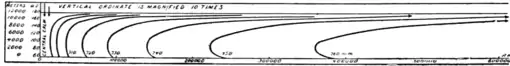 The tornado generally ends at a level something like 1,200 meters above the ground, and it is usually much less than half a mile in diameter. The hurricane, however, is probably 12,000 meters thick, and it extends several hundred miles in diameter. This makes the hurricane a very thin mass of air of broad extent, as compared with the word tornado, which is a relatively high mass of air and narrow in extent. We can construct the velocities in the hurricane from our meteorological data, and show that the winds blow at a certain angle, which conforms to the section that cuts off or truncates the vortex at a certain plane. These angles should be more fully explained. On the lowest plane the wind flows radially and directly towards the axis; on the uppermost plane it flows radially and directly away from the axis; at a middle section, half way between these two planes, it flows in circles tangentially around the axis. In passing from the lower plane to the upper plane the wind gradually makes a larger angle with the radius; first 10°, then 20°, then 30°, and so on up to 90° at the middle plane half way up the tube; then 100°, 110°, and so on up to 180°, which represents the wind flowing radially away from the axis. If now a vortex is truncated at a certain plane, all the winds on that plane will make a given angle with the radius. If a truncated plane is one third the distance up the axis then the wind will make an angle of 60° with the radius; that is, it will blow in at an angle of 30° from a circle. This is about the angle of the wind which observers have recorded in the case of hurricanes, and hence it is proper to infer that the truncated section should be drawn at about the distance indicated from the lower plane.