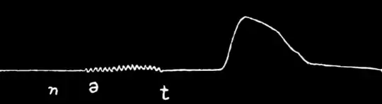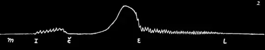 descent of the line after "u" indicates that this sound was cut short by some closure in the mouth, namely, by the tongue action for the sound "c." The line, however, does not remain at zero, but rises gradually; this indicates a steady emission of breath and not a complete closure. The partial closure is finally released and the explosion is registered in the sharp upward movement of the line. The sound "c" thus shows a sharp explosion like that of "t" but an incomplete closure. The closure is much greater than that of "sh" and the emission of air is much smaller (Fig. 4). The Italian soft "c" is therefore not an explosive occlusive like "t" or even like English "ch"; it is not a fricative like "sh"; it might be termed a fricative with an explosion. At any rate it is a distinct sound not existing in English.