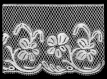 All lace has two edges, the "footing," a narrow lace which serves to keep the stitches of the ground firm that it may be sewed to the garment upon which it is to be worn (Fig. 3); and the "pearl," picot, couronne, a row of little points or loops at equal distances at the free edsre as shown in the figures.