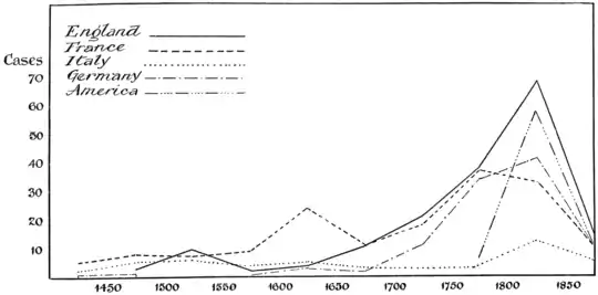 Curve II. The Numbers of Eminent Women of Different Nationalities.