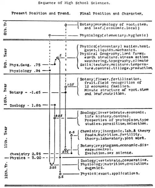 school science should be, experience has established a generally accepted order, agreeing more or less with the authoritative report of the Committee of Ten. Recent high school courses of study of the twenty-one largest cities in Illinois, omitting Chicago and its environs, give interesting data concerning the present practise. The method of using these data was to give the value .5 to a science offered any time in the first