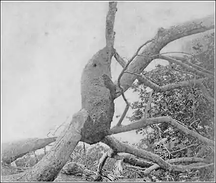 A Termite's Nest on a Dead Tree. Note that a woodpecker has made a hole near the top.