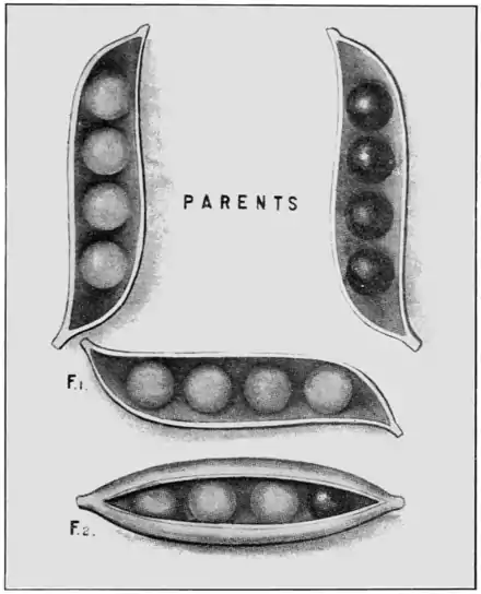 of peas which differed from each other in some one of the characters mentioned above, and then studied the offspring of several successive generations with respect to this character.