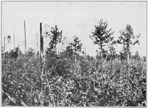 Young Trees of Red Pine (Pinus resinosa) in Brush Land Subject to Frequent Fires, Cheboygan Co. Michigan. August, 1912.