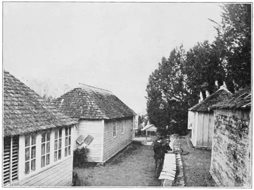 living and sleeping accommodations for eight or ten workers. There are two laboratories, each well lighted on two or three sides, that will accommodate the same number of workers, with tables, shelving, some simple glassware and a supply of plant dryers. There are two greenhouses that can be used for keeping experimental material under constant conditions, and which incidentally collect water for two large cisterns that supply the laboratories and house. The clear, absolutely pure water for drinking and cooking is brought on the head of a native carrier from the springs of the Clyde River, 500 feet below Cinchona.