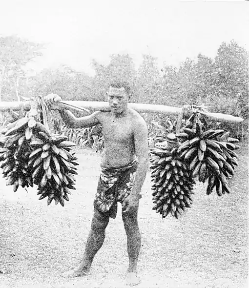 A Tahitian Carrying Bunches of Wild Plantain "Fei." The man had come several miles down the mountain side bearing this enormous burden.