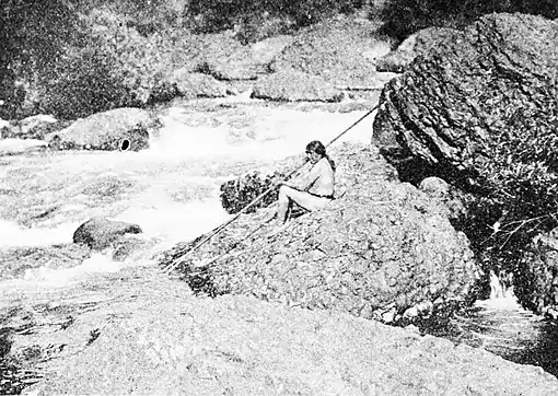 More than once on such expeditions the Indians were perilously near exposure. Once an excited white man, with a repeating rifle and dogs, trailed them so closely that in crossing a stream they dropped a piece of headgear in their hurry. This headdress, fearfully and wonderfully wrought out of scraps of a dozen different fabrics, is now in our Museum. At the time of this escape the Indians were not seen, though where they had forded the stream the rocks were still wet.