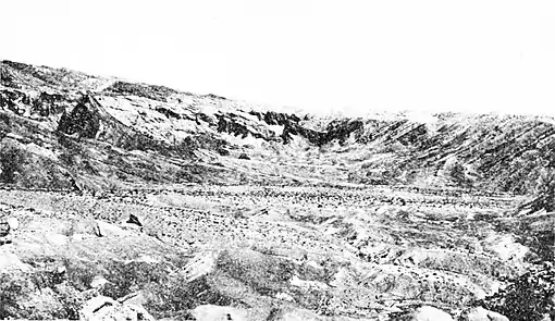 Folded and Faulted Strata Representing a Portion of the Section Containing Fossil Remains North of Barstow. (Photograph by C. L. Baker.)