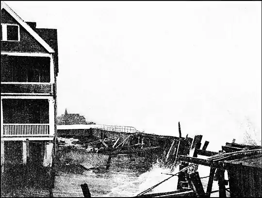 Fig. 7. Breaching of Bulkhead and Beginning of Undermining. Same house as in Fig. 6.