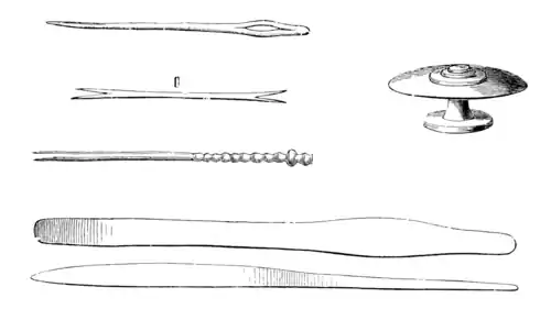 Figs. 56–60.—Various small objects of bronze from the Swiss lakes.
