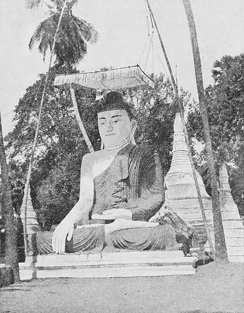 It seems as if the whole wonderful group must have arisen in a single moment at the bidding of a divinity, so ethereal, so harmonious is the impression it makes upon the mind. Yet each image owes its existence to the piety of some simple husbandman, spending with royal largesse the proceeds of his harvest. The Burman, no wise calculator, gives all he can and knows not ignoble thrift[1].