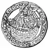 From other accounts,[1] we learn that ships had capstans and "helms," or tillers; that bowsprits were very small, probably not yet supporting any sail; that one mast was still usual even in vessels of some size, although two masts were carried by a few craft; and that "triefs" or sails were furnished with "bonnets,"[2] or additional parts made to fasten at the foot with latchings, so as to increase the sail area in moderate winds. Some masts carried two sails, a course and a topsail, but fore-and-aft sails seem not to have been employed.