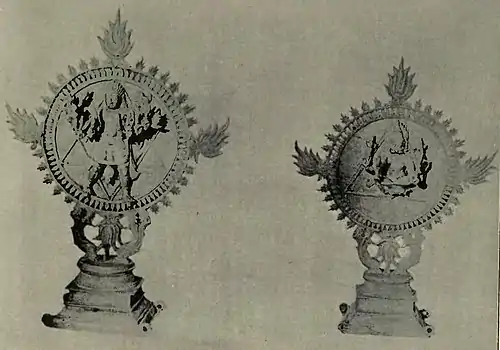 Fig. 45.—Sudarsana, front and back view (metal); Dadikkombu.