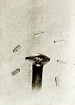 | (Magnified and photographed with the head of a medium-sized pin to show relative size.) | |||