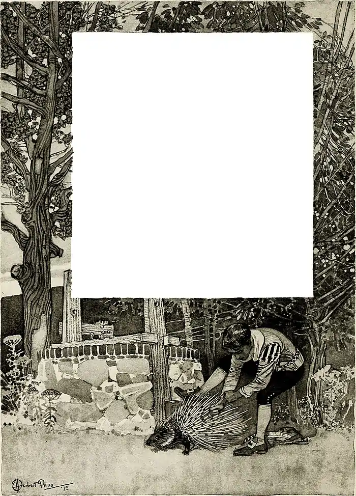 “Help!” cried the bat, and the boy replied by snatching up a big stone and throwing it at the snake. It hit him—tunk—and the snake turned an inquiring eye upon the boy, who immediately caught up another, larger stone, and hit the snake with a louder tunk. Thereupon the snake turned both eyes inquiringly on the boy, and, seeing him pick up a third even larger