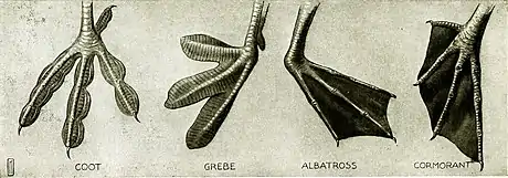 SOME EXAMPLES OF THE “PADDED” FEET OF SWIMMING BIRDS.