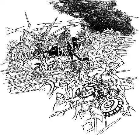 In reading both these romances, you will see that the Saxon and the Dane both adored freedom with a real passion. The trouble with Hereward was that he loved himself best of all, however, and he brings harm and sorrow to England, and more to himself, and dies betrayed; but it is a brave death, a hero’s death, one against many. Torfrida, his wife, forgives him then for the wrongs he did her and others. It was an age of sudden death and constant peril, and courage was the greatest possession a man might have; Hereward died a brave man, and, therefore, was counted a good one at the last.