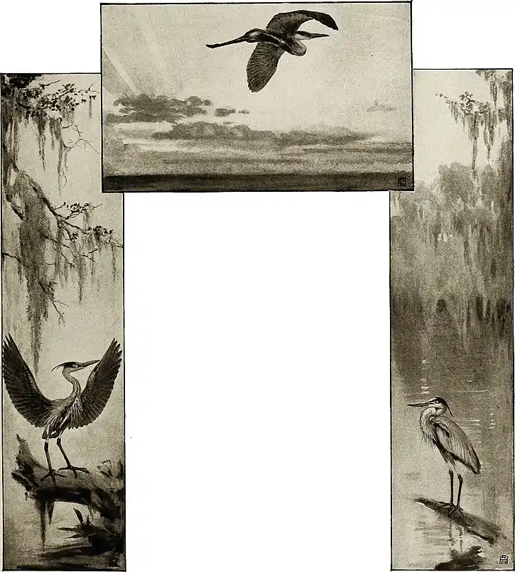 The great blue heron flies for the lakes,
