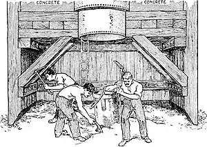 “Oh, then we just fill in with concrete. The concrete is laid round the cutting edges first. The filling then proceeds toward the center. Then we work up the shaft, filling up the hole behind us until the entire pier is built up solid. What next?” asked Mr. Squires.