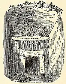 belonging to the Rev, John Grace, vicar of Westham, who kindly permitted us to dig there. Openings were therefore made at the point marked i, where at the depth of two feet and a half, we succeeded in exposing a large drain, carefully constructed with large stones, as shown in the annexed woodcut. It runs about north-west and south-east, but of its purpose, or the period of its construction, I cannot hazard any conjecture. The opening was about 18 inches high.[1]