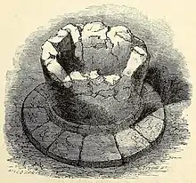 basin of rude workmanship raised upon a circular step 4 feet 10 inches in diameter, as shown in the above wood engraving; the material is a rough, friable, white stone resembling