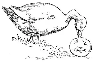 "When I have given the slip to Goody Poody, and the goodman, and seven squalling children, and Manny Panny, and Henny Penny, and Cocky Locky, and Ducky Lucky, and Goosey Poosey, I may well slip through your feet, Gander Pander," said the pancake, which rolled off as fast as ever.
