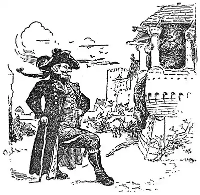 Then the schoolmaster strode off to the courtyard, and put himself before the princess's window, and read