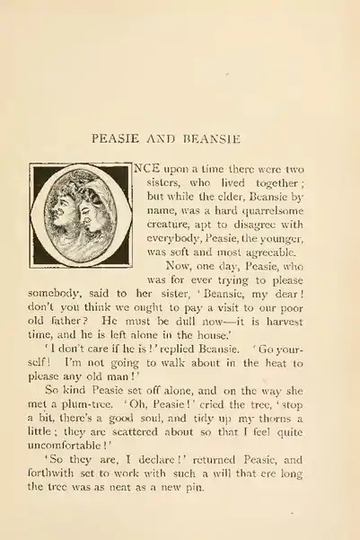 NCE upon a time there were two sisters, who lived together; but while the elder, Beansie by name, was a hard quarrelsome creature, apt to disagree with everybody, Peasie, the younger, was soft and most agreeable.