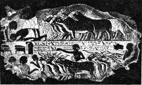 |- |style="text-align:center;text-transform:uppercase;"|Ancient Egyptian cattle. |- |style="text-align:right;"|[From Keller |}