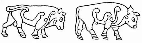 The figures show two kinds of bulls, a horned and a hornless. The following illustrations of