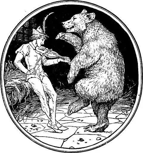 ‘Oh,’ cried the bear, ‘I do wish I could play like that, then I could dance whenever the fancy took me. What do you think? Would you give me some lessons?’