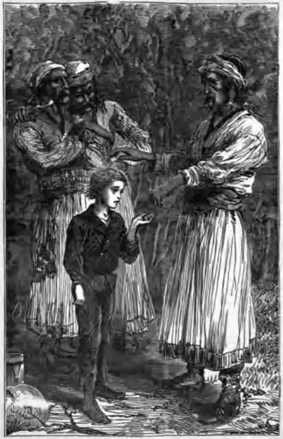 THE BOY BECAME QUITE STIFF, AND STOOD LIKE A STATUE, LOOKING INTO THE INK IN THE HOLLOW OF HIS HAND.