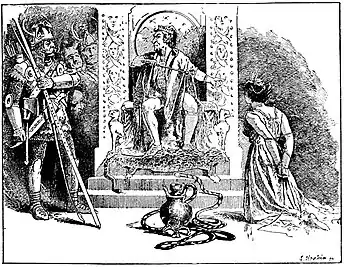 she might run away, and brought her to the King, who was waiting with his son.