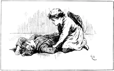 Suddenly a child's terrified scream, breaking the stillness of the place, startled her. She hastened in the direction from which the sound had come, and was soon on the spot where Ralphie lay unconscious on the floor, Nellie crouched beside him.
