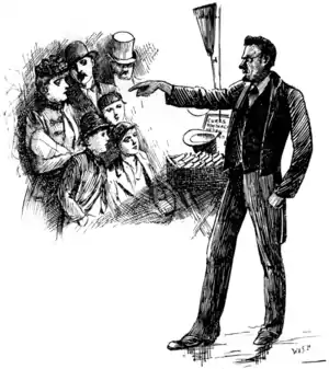 Another gentleman, with every assurance, declared solemnly that he was not there for himself, he was working on behalf of a very dear friend laid on a bed of sickness. He (the quack) had made enough and plenty of money to last him all his lifetime, and, apparently forgetting what he had said before, was selling his herbal compound purely, solely, and simply for the benefit of the people.