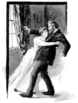 She held him close in her arms, trembling; her voice broken with sobs, seeking his lips with hers.