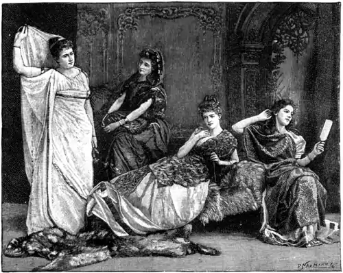 "The Gambler's Wife" is taken from the well-known picture. In this tableau the colour is pretty evenly balanced, the costumes were remarkably good, and every detail carefully studied from the original. The scenery, too, was a great success, and altogether was much admired.