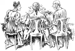 At this time the Moorish, or Hindoo, Gentleman seated himself at the Head of the Table, and made certain curious Wavings of his Hands toward the Company; and, there being presently served a cold Repast of Bread, Potatoes, Porridge, and Water—at which I could not repress a Shudder—they all fell to with a huge Enjoyment, expressing at the same time great Satisfaction at the Delicacy, Variety, and Richness of the Viands, and this with much Smacking of the Lips, and Sucking of the Fingers, as is the Mode in all good Society; especially among the Tartars, who are the Moors inhabiting some Parts of the Continent of Asia.