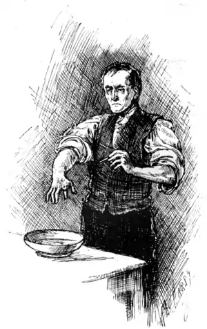 The stranger took a pencil from his pocket book and traced on his hand a ring about the size of a sixpenny-piece, and said: