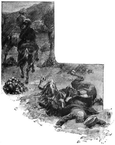 The trembling trooper picked himself up and tried to explain that his horse had fallen over one of the little cairns that are built of loose stones on the spot where a man has been murdered. There was no need to go on. The Major's big Australian charger blundered next, and the men came to a halt in what seemed to be a very graveyard of little cairns all about two feet high. The manœuvres of the squadron are not reported. Men said that it felt like mounted quadrilles without the training and without the music; but at last the horses, breaking rank and choosing their own way, walked clear of the cairns, till every man of the squadron re-formed and drew rein a few yards up the slope of the hill. Then, according to Lieutenant Halley, there began another scene very like the one which has been described. The Major and Carter insisted that all the men had not joined ranks, and that there were more of them in the rear clicking and blundering among the dead men’s cairns. Lieutenant Halley told off his own troopers for the second or third time, and resigned himself to wait. Later on he said to me:—