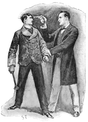 "Precisely. It was I. I found that I had my man, so I came home and changed my clothes. It was a delicate part which I had to play then, for I saw that a prosecution must be avoided to avert scandal, and I knew that so astute a villain would see that our hands were tied in the matter. I went and saw him. At first, of course, he denied everything, But when I gave him every particular that had occurred, he tried to bluster, and took down a life-preserver from the wall. I knew my man, however, and I clapped a pistol to his head before he could strike. .png.webp)