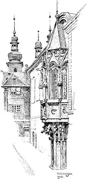 THE GOTHIC PROJECTION, CAROLINUM Yet a short mention should be made of Conrad Waldhauser and Milic of Kromerize. The former, an Austrian by birth, was called to Prague in 1358 by Charles, and preached at several churches there, but principally at the Tyn Church, where he became rector about the year 1360. Though he generally preached in German, his sermons, containing eloquent denunciations of the immorality and luxury of the times, greatly impressed the Praguers, even the vast Tyn Church occasionally became insufficient to contain his audience, and he sometimes preached in the streets and market-places. He strongly inveighed against the immorality and extravagance of the citizens of Prague, and the result of his preaching was very striking. We read that the women of Prague dis-