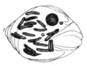 Fig. 22.—Ruptured oöcyst containing Ross's black spores. (After Grassi.)