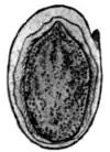 The ova are discharged in the fæces of the vertebrate host. In this way they get carried to water, where the ciliated miracidium escapes. In 1913 Miyairi and Suzuki traced the ciliated miracidium into a fresh-water mollusc, Katayama nosophora (Fig. 143), wherein, after shedding its cilia, it becomes a sporocyst (Fig. 144, a), in which ultimately numbers of fork-tailed cercariæ are developed (Fig. 144, b). On maturity the cercariæ escape into the water and, opportunity presenting, penetrate the skin of some appropriate vertebrate (man, cat, dog, mouse, etc.), in whom they attain sexual maturity. These observations have been confirmed by Leiper.