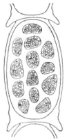 Fig. 203.—Davainea asiatica, sagittal section of gravid segment. (After Linstow.)