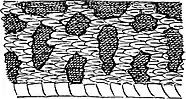 Length, sixty inches; stout; light gray-brown, with three rows of red brown, dark-brown or black spots, more or less confluent; sometimes spots blurr, forming zigzag bands or broad cross bars; head, broad and triangular; forehead covered with scales not larger than those of the back; the upper jaw with two large fang teeth containing the poison; last joints of tail horny and flat, forming the rattles; end of tail blunt.